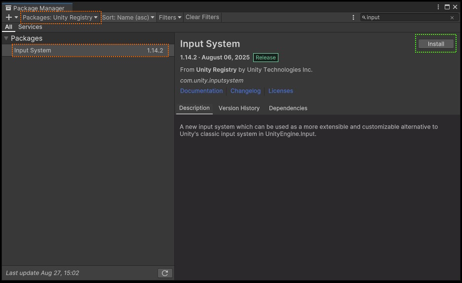 If you don’t skip, Unity will prompt you to restart as soon as the dependency is installed to enable the new input backends.